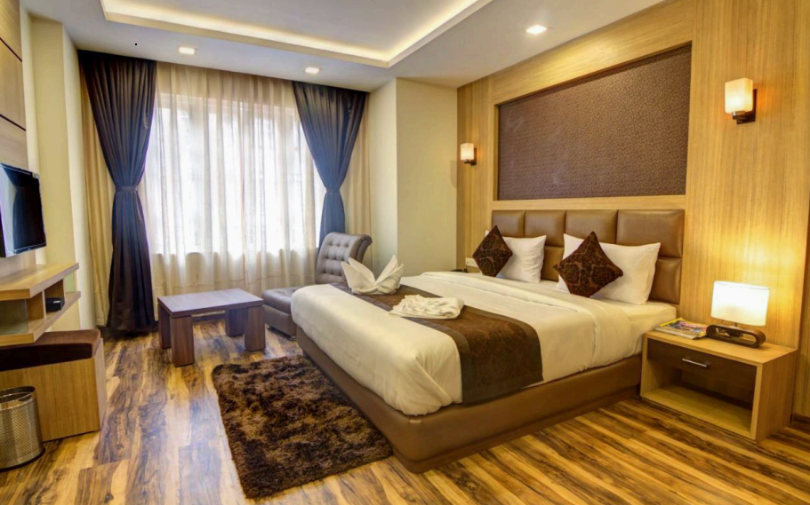 Experience unmatched comfort in our spacious Suite Room, featuring a stylish bedroom, separate living area with plush seating, elegant wooden decor, and modern amenities. Perfect for families or business travellers, the suite offers ample space to relax, work, or entertain, ensuring a truly luxurious stay at The Cosmos Hotel, Gangtok.